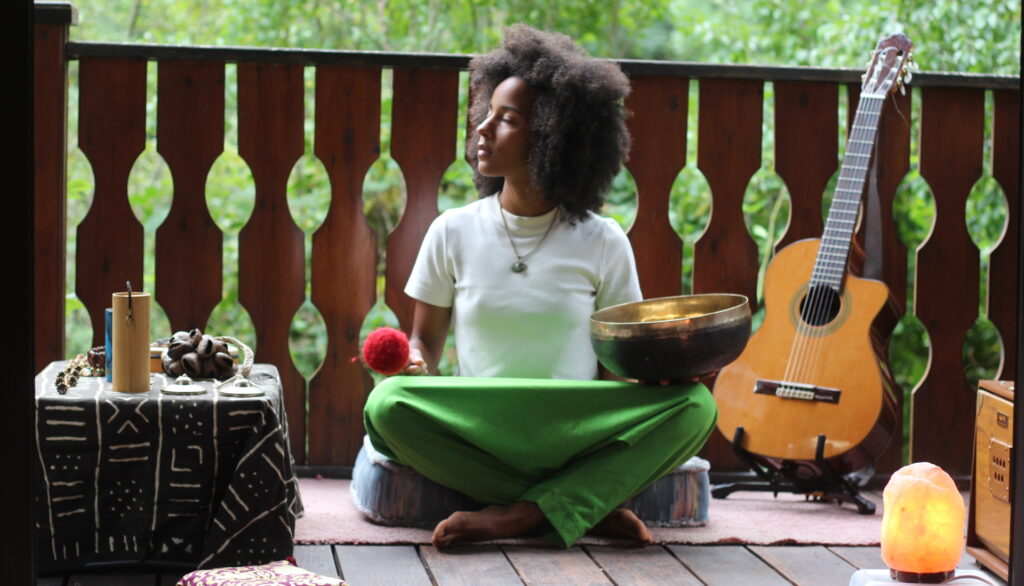 Vous vous installez confortablement, fermez les yeux et laissez-vous envelopper par ma voix, les bols tibétains, berimbaus, carillons, sansula…